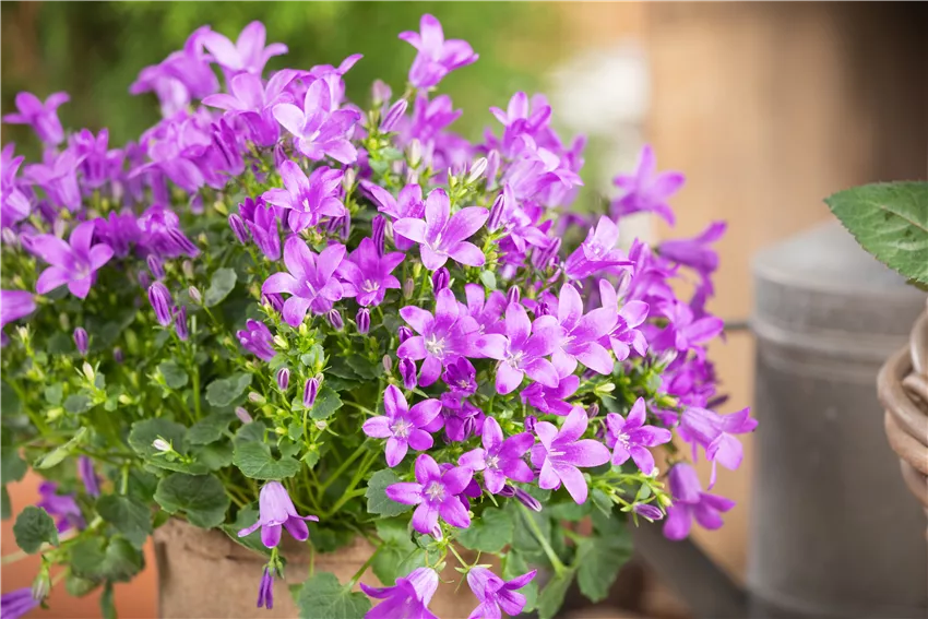Campanula portenschlagiana 'Royal' Jede Möglichkeit, Beet- und Balkonpflanzen zu kaufen hat so ihre Vor- und Nachteile. Ob nun stationär oder online – das ist Geschmackssache. Während man sich die Pflanzen im Gartencenter ums Eck direkt anschauen kann, weiß man natürlich vor dem Besuch nie, ob man die Favoriten auch kaufen kann. Im Internet kann man sich die Pflanzen zwar nicht direkt anschauen, sieht aber direkt, welche Kandidaten verfügbar und lieferbar sind und welche nicht. Aber Kopf hoch: Wenn die Nachfrage groß ist und die Lieblinge gerade nicht verfügbar sind, gibt es immer noch die Merkliste. Hier kann man sich die Lieblingspflanzen für später speichern und mit einem Kundenkonto wird man benachrichtigt, wenn die Pflanzen wieder verfügbar und lieferbar sind. Wer im stationären Handel Zeit sparen will, kann auch von Click & Collect profitieren. Hier kann man sich als Kunde online die Pflanzen zusammenstellen, sie Reservieren oder je nach System direkt kaufen und dann im Gartencenter um die Ecke abholen. Dabei kann man sich dann auch noch ein persönliches Bild von den neuen blühenden Mitbewohnern machen.