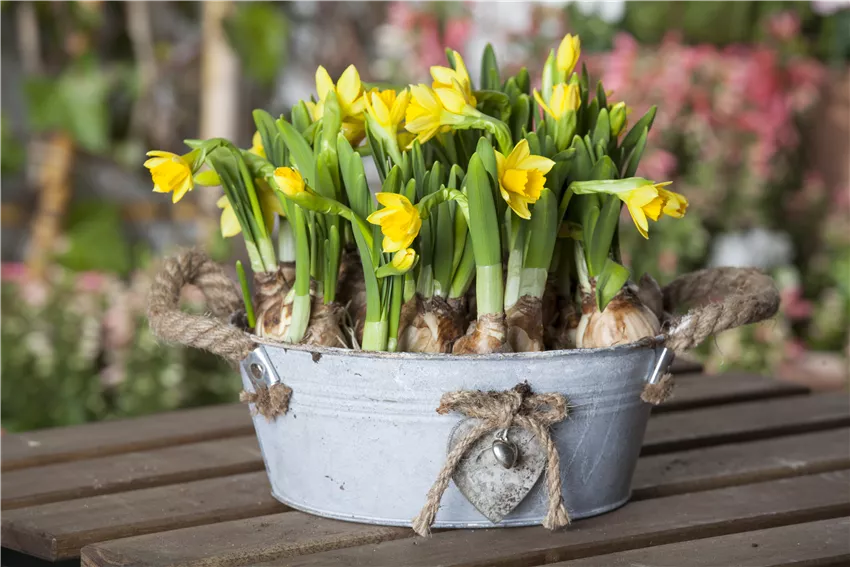 Narcissus cyclamineus 'Reggae' Alpenveilchen eignen sich aber nicht nur hervorragend als Zimmerpflanze, sie sind auch im Garten, auf der Terrasse oder auf dem Balkon ein Highlight. Vorfrühlings-, Sommer- und Herbst-Alpenveilchen zeigen zu den unterschiedlichsten Jahreszeiten ihre Blüten und eignen sich daher für die verschiedensten Arrangements. Besonders beliebt im Herbst: Die Kombination aus Heide, Chrysanthemen, Fetthenne und Alpenveilchen. Wind und Wetter kann den Pflanzen nichts anhaben und es scheint, als würden sie sich bei rauem Wetter noch wohler fühlen. Im Garten, auf der Terrasse und auf dem Balkon sollte der Standort im Halbschatten oder Schatten liegen, damit Blüten und Blätter in der Sonne nicht verbrennen und Schaden nehmen. Auch hier sollte auf eine ausreichende Wasserversorgung geachtet werden. Sind die Alpenveilchen aber erst einmal richtig eingewurzelt, erledigt sich das fast von allein. Nur im Sommer kann es sein, dass zusätzlich gewässert werden muss. Während Zimmer-Alpenveilchen frostempfindlich sind und nach dem Sommerurlaub im Spätherbst wieder ins Haus geholt werden sollten, gibt es unzählige Arten, die winterhart und unempfindlich sind.