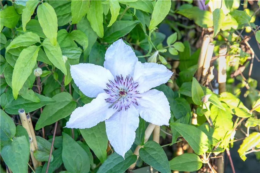 Clematis 'Justa' Kletterpflanzen sind an sich schon etwas ganz Besonderes. Aber wenn man dann noch die richtigen Beetnachbarn für Kletterpflanzen raussucht, kann nichts schief gehen. Die sind schnell gefunden und mindestens genauso schnell im Gartenkonzept integriert.
