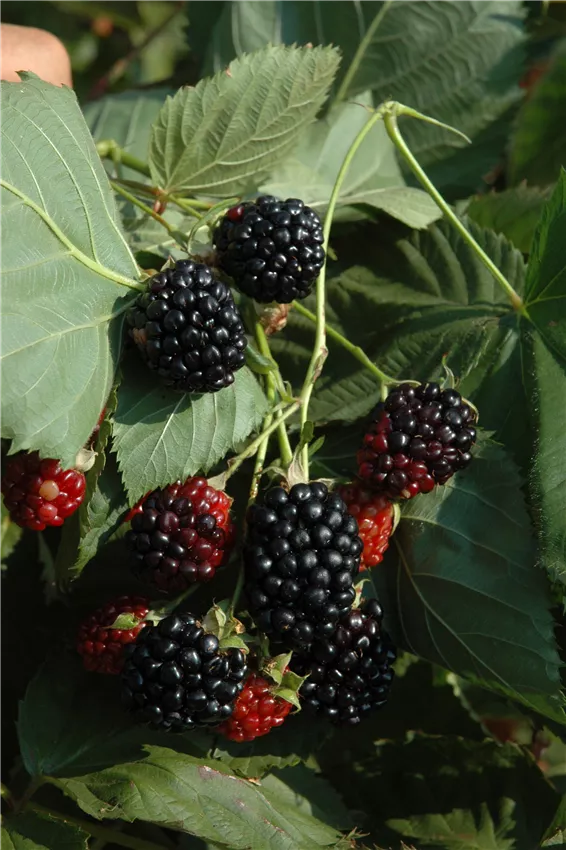 Rubus fruticosus 'Choctaw'® Brombeeren gehören zu den mehrjährigen Kletterpflanzen. Das bedeutet: Einmal Brombeeren pflanzen – viele Jahre ernten! Brombeeren sind wahre Alleskönner in der Selbstversorgerküche. Dabei stecken sie auch noch voller Vitamine und Mineralstoffe. Sie enthalten außergewöhnlich viel Provitamin A, aber auch Vitamin C und E. Die schwarze Farbe der Brombeeren kommt von den Anthocyanen, denen ebenfalls gesundheitsfördernde Eigenschaften zugeschrieben werden.