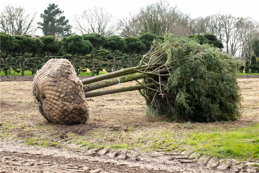 Wurzelballen Nadelgehölze sollten idealerweise direkt nach dem Kauf eingepflanzt werden. Lässt sich eine mehrtägige Lagerzeit nicht vermeiden, ist es wichtig, die Pflanzen in den Schatten zu stellen, damit sie vor der prallen Sonne geschützt sind. Der Erdballen muss unbedingt feucht gehalten werden und darf auf keinen Fall richtig austrocknen. Bei Containerpflanzen reicht ein einfaches Feuchthalten nicht, sie müssen bis zur Einpflanzung regelmäßig gegossen werden. Sowohl Ballen- als auch Containerpflanzen müssen sich vor dem Einpflanzen in einem mit Wasser gefüllten Topf vollsaugen dürfen. Sie sollten mindestens so lange im Wasser bleiben dürfen, bis keine Blasen mehr aufsteigen. Das Nadelgehölz wird während des Herausnehmens lediglich am Ballen und nicht am Gehölz gefasst.