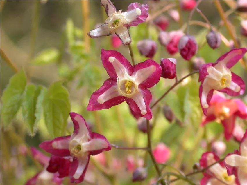 Epimedium alpinum Nicht nur in der Sonne kann der Boden manchmal trocken und schwierig sein. Auch im Schatten kommt das vor und auch dort gibt es Pflanzen für trockene Standorte. Ein beliebter Frühblüher ist der Blaurote Steinsame und auch der Tüpfelfarn fühlt sich im trockenen Schatten sehr wohl. Er ist besonders robust und wächst sogar in Mauerfugen. Ein weiterer Kandidat ist die Wild-Aster, die im Herbst mit ihren wunderschönen Blüten für ein echtes Highlight sorgt. Und wer sie noch nicht kennt, sollte bei Pflanzen für trockene Standorte im Schatten unbedingt an die Elfenblume denken. Sie überzeugt mit ihrem wunderschönen Laub, das sogar im Winter für den ein oder anderen farblichen Akzent sorgt. Die Große Sterndolde zeigt im April und Mai, wie schön sie sein kann und erhellt den Schatten mit ihren wunderschönen Blüten. Und zu guter Letzt sollte man die Balkan-Wolfsmilch im Hinterkopf behalten, denn ihre grüngelben Blüten sind im Schatten ein echtes Highlight. Man muss also auch im Schatten nicht auf bunte Farben verzichten und schon gar nicht, wenn der Standort eher trocken ist. Oft kennt man den Schatten ja eher feucht und klamm, aber auch trockener Schatten kann wunderschön begrünt werden.