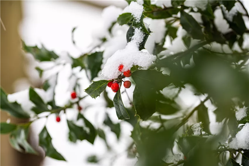Ilex im Schnee Auch, wenn der Garten im Winter eher ruhig ist, fällt Gartenarbeit im Winter an, die erledigt werden sollten, damit der Start ins neue Gartenjahr gelingt.